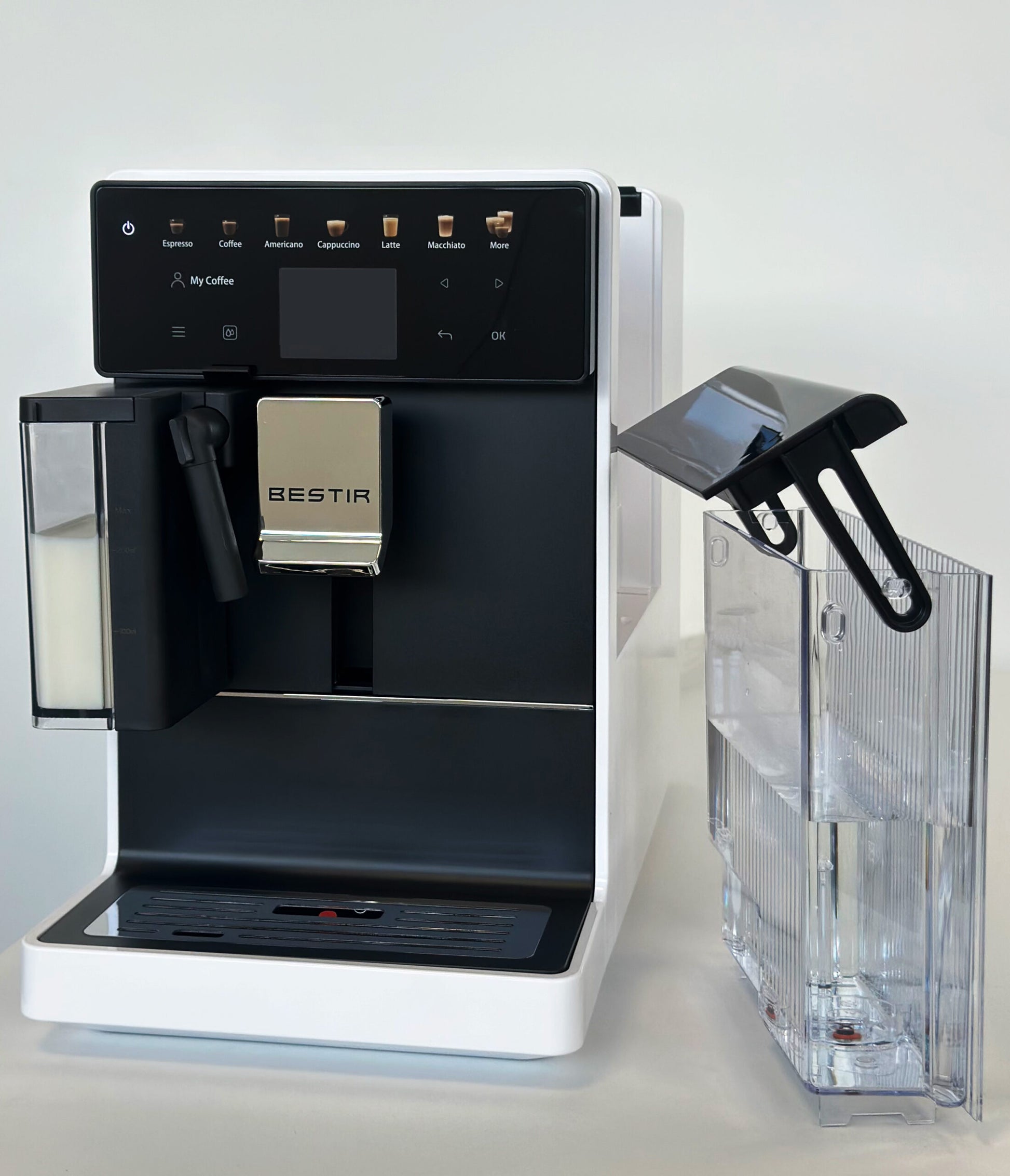 The Bestir Melange is a bean-to-cup powerhouse designed to bring barista-quality coffee to your home or office — all at the touch of a button.